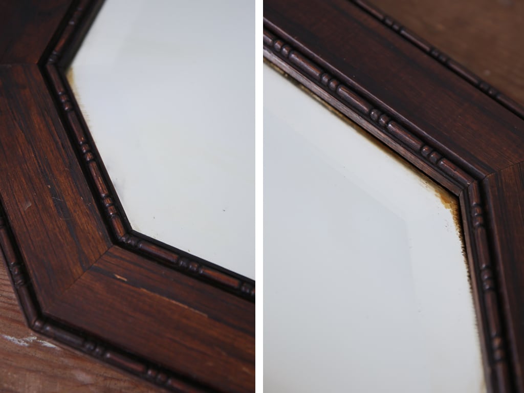 イギリスの田舎で見つけたオクタゴナルフレームのカッティングミラーです。
