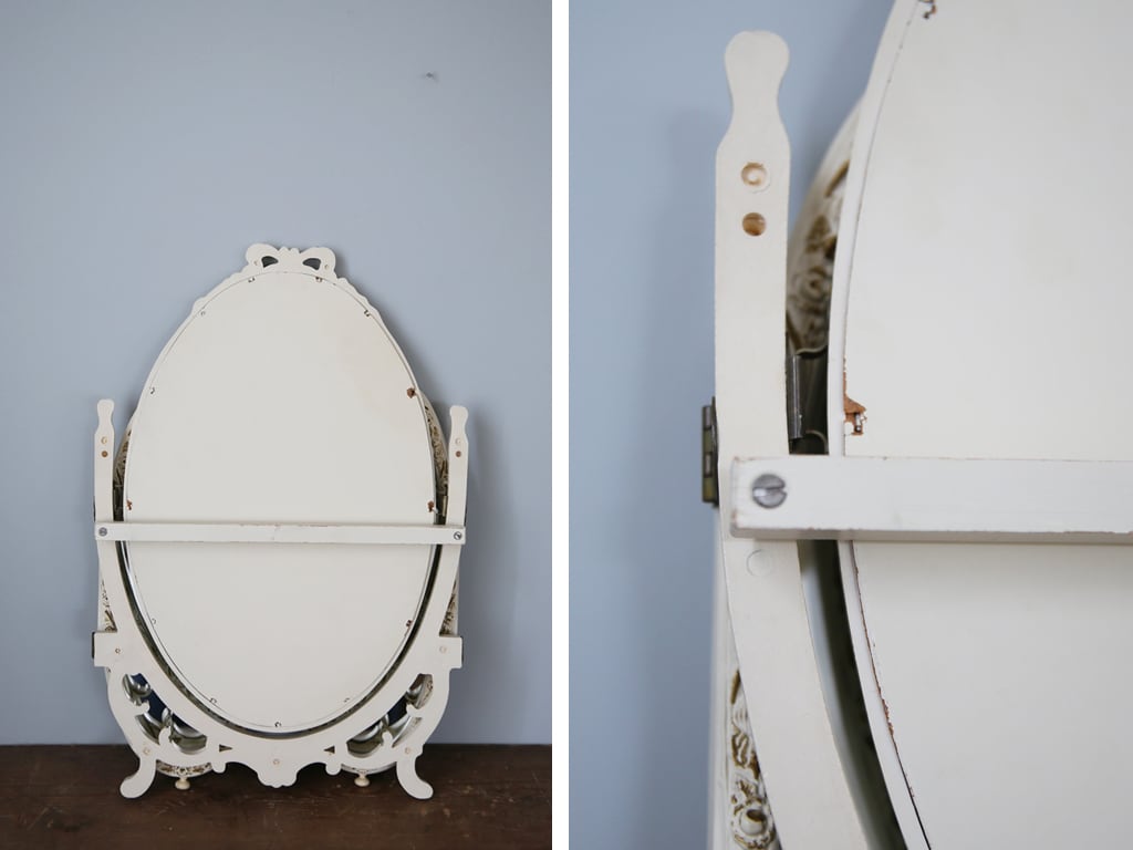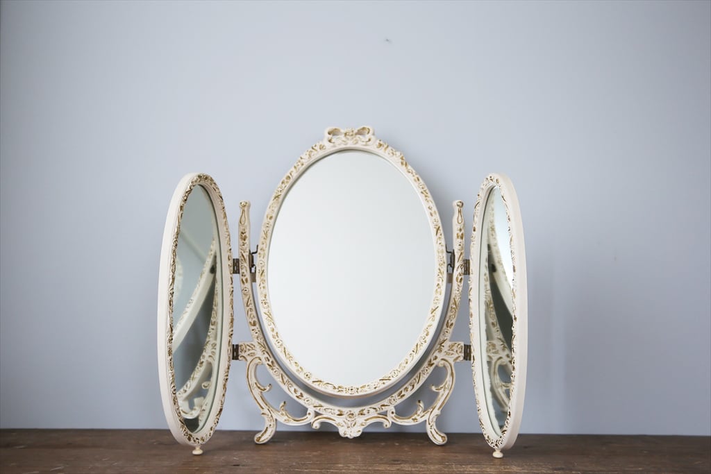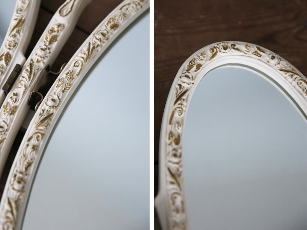 フランスの田舎でみつけた白色フレームの三面鏡です。