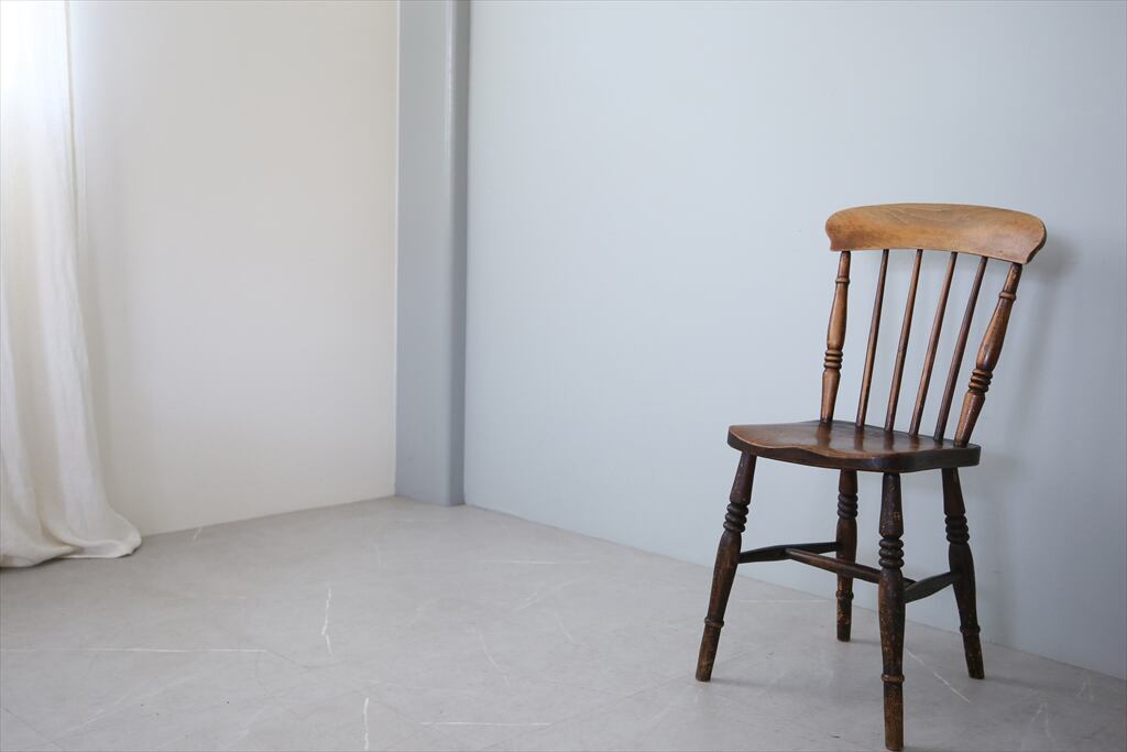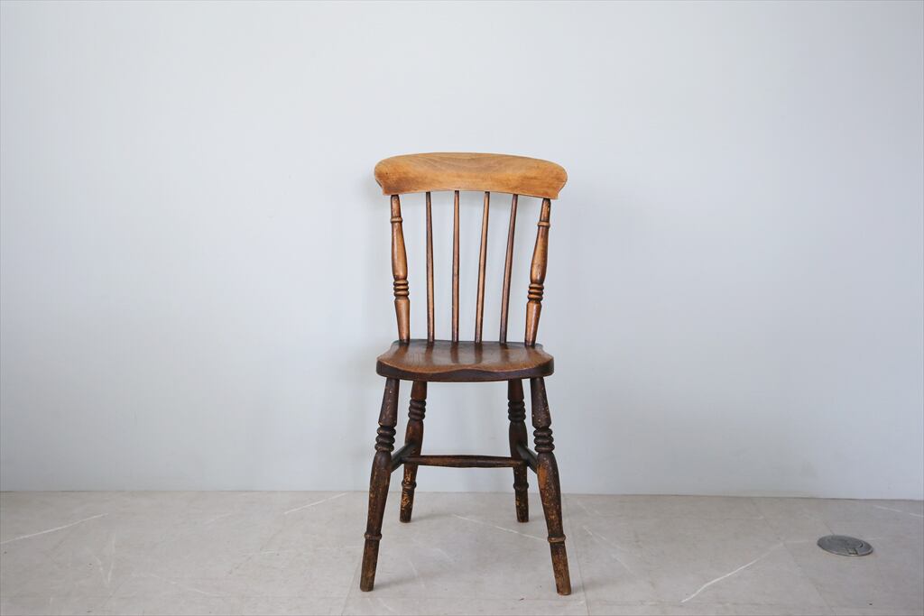 アンティークのイスの中でも特に人気なのがこちらのタイプのキッチンチェアで、もともとはキッチンやファームハウスなどの作業をするための場所で使われていたイスです。言うなれば作業用のイスですね。