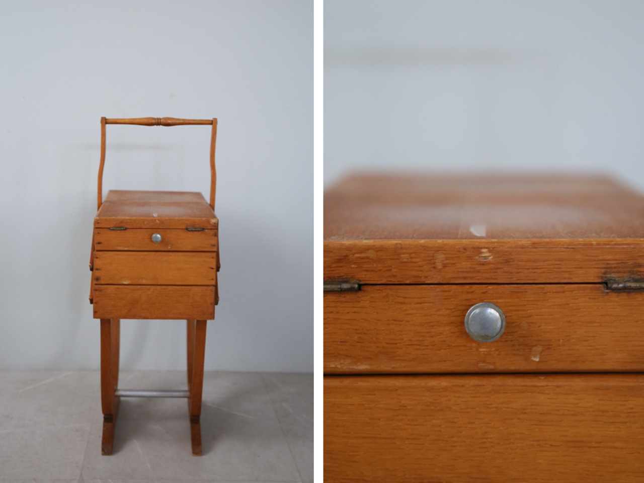 フランスの田舎で見つけた古木のソーイングボックス(裁縫箱)です。