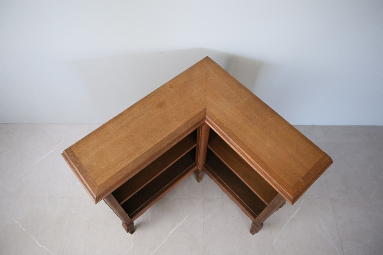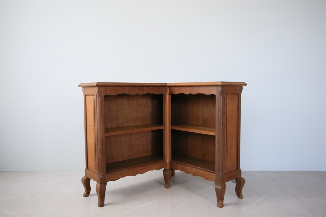 フランスの田舎で見つけた猫脚のコーナーブックシェルフです。