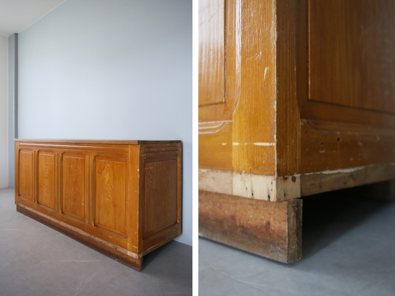 フランスの田舎で見つけた古木のショップカウンターです。
