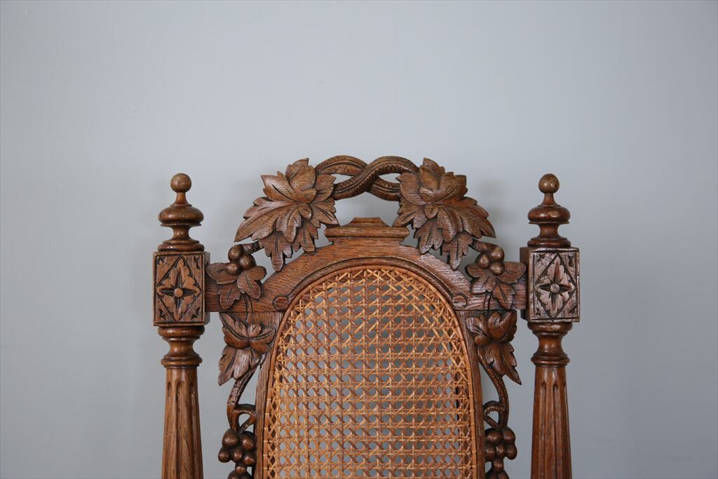 ピアスドカービング(透かし彫り)、アカンサスリーフ、カービングストレッチャー(足をつなぐ横貫)など特徴が目白押しです。