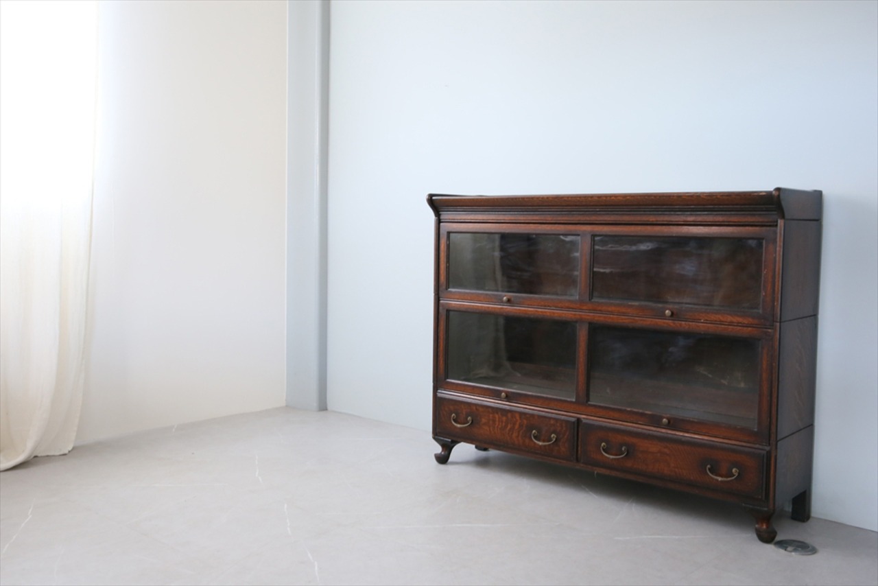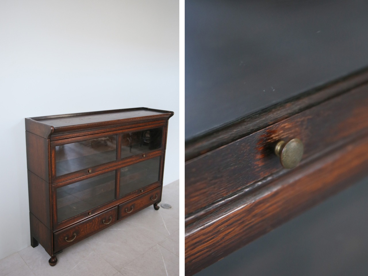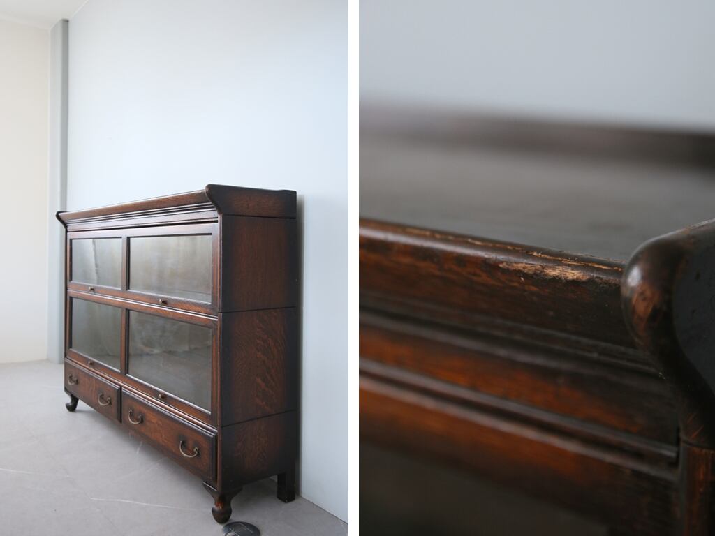 フラップ式のガラス扉は宝物を大事にそっと取り出すような気分にさせてくれます。当時のオリジナルのガラス扉がはまった情緒溢れる一品です。