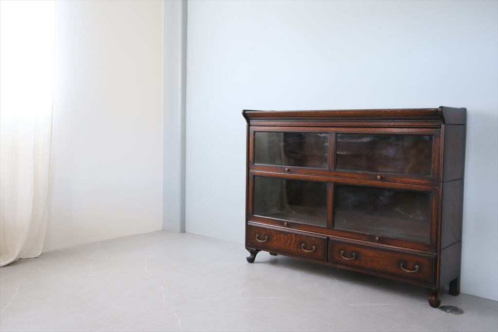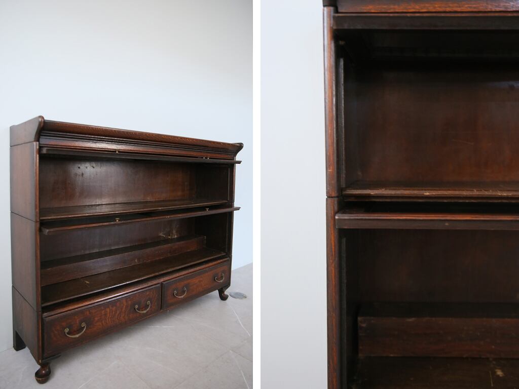 イギリスの田舎で見つけた古木の2段スタッキングブックケースキャビネットです。