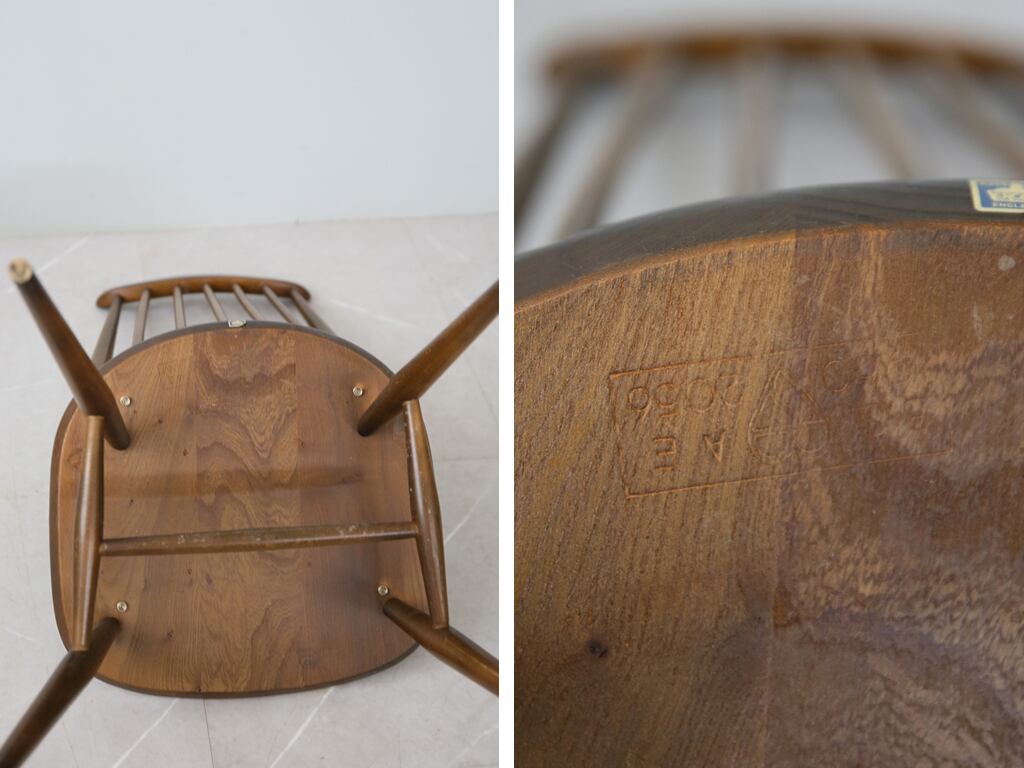 ブルーラベルは1954年~1970年の家具に使用されていたブランドのラベルで、Ercol社がウィンザーチェアの大量生産に成功して勢いのあった時期の家具に使用されたものです。現在では数も少なくなり程度の良いブルーラベルのチェアはマニア心くすぐる一品となっています。