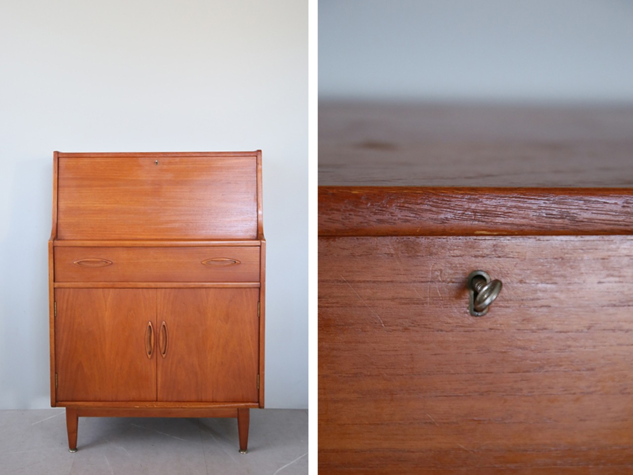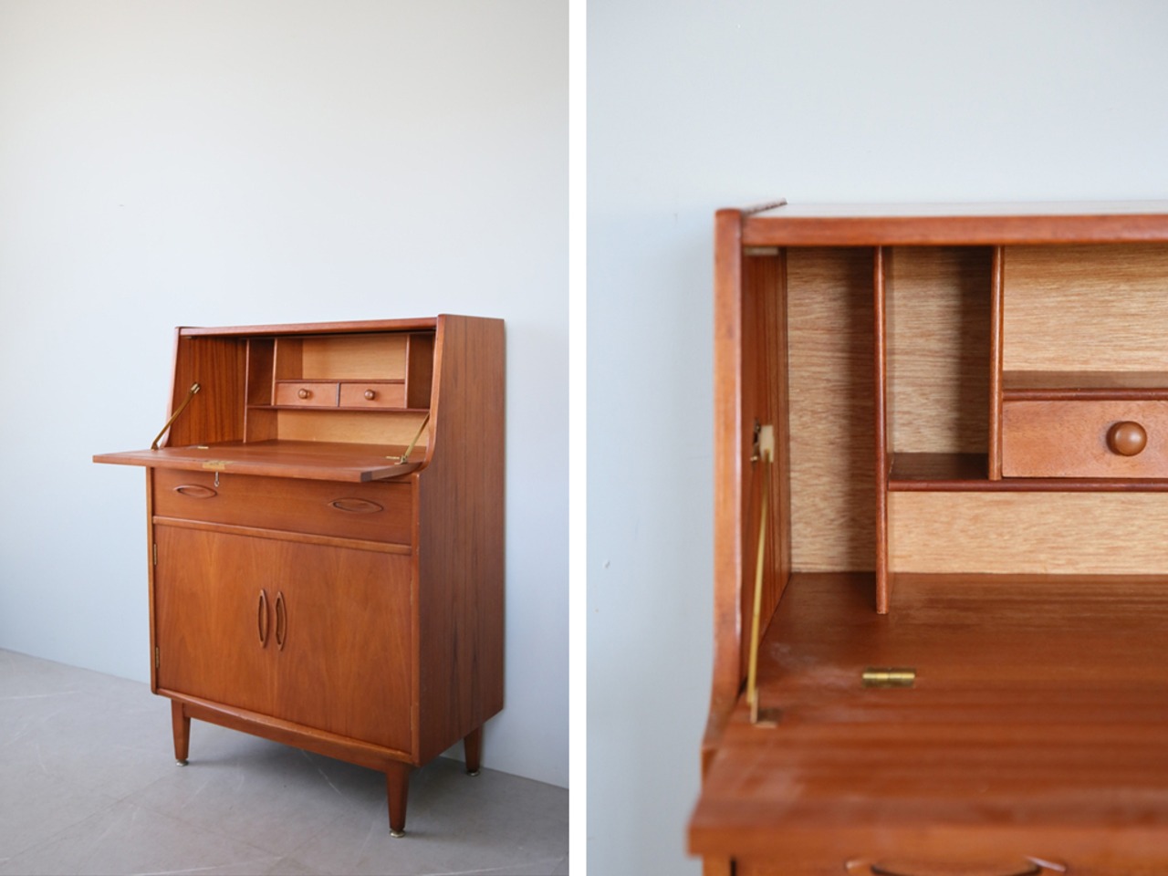 また、こちらは世界中で人気となっている英国ミッドセンチュリーのチークファニチャー。G-PLAN(ジープラン)やマッキントッシュなどとの家具とも高相性なライティングビューローなので、同ブランドやミッドセンチュリーテイストのお好きな方にはお勧めの一品です。