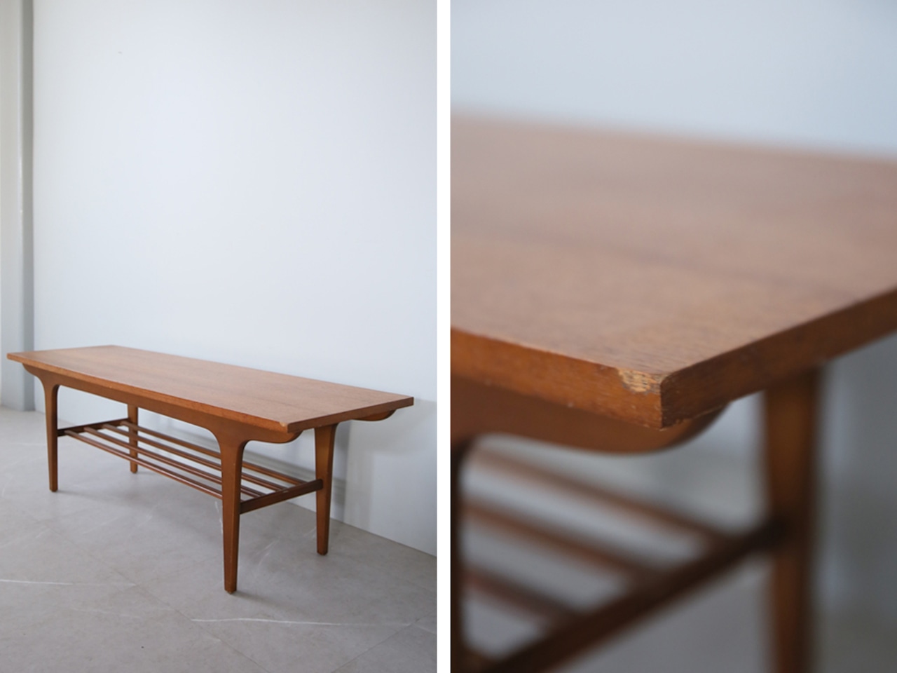 日本でも人気の高いチーク材のミッドセンチュリー家具は海外でも数が少なく希少です。こちらは状態も良く人気の高いコーヒーテーブルですので、コレクターの方はもちろん、ミッドセンチュリー家具の好きな方にもお勧めです。