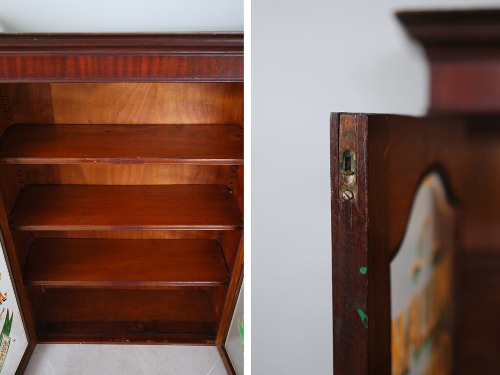 古い木製ガラスキャビネットは、大切なコレクションの収納用としてや、プレートやカトラリーの飾り棚としても活躍してくれそうです。お部屋のアクセントとしてはもちろん、店舗什器としてもぴったりな一品です。