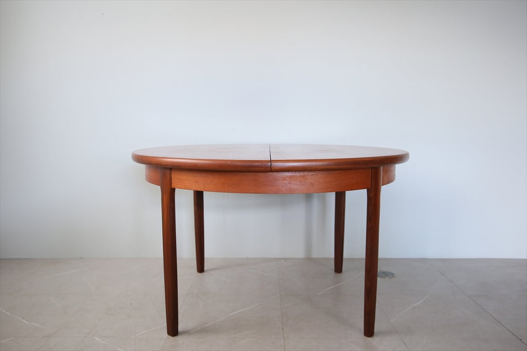 日本でも人気のチークファニチャーは海外でも数が少なく大変希少です。こちらは人気の高いラウンドダイニングテーブルですので、コレクターの方はもちろんミッドセンチュリー家具の好きな方にもお勧めです。