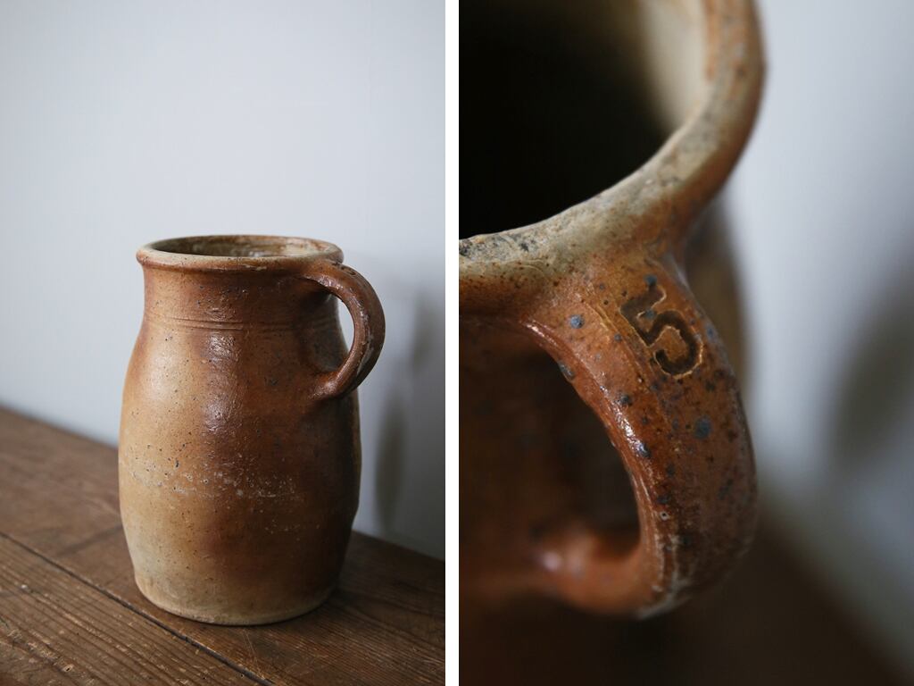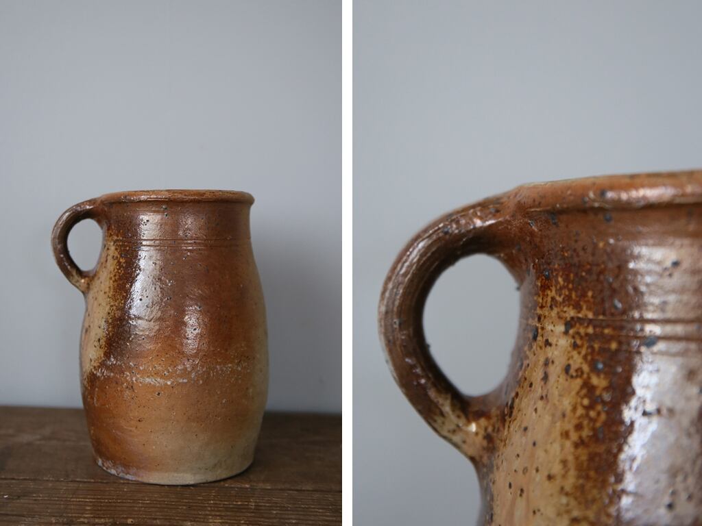 手に持つとずっしりとした重みがありカントリーテイストのこれらは、インテリアとしても存在感たっぷりです。インテリアや花器としてはもちろん、テーブルにそっと置いておくだけでもお洒落です。