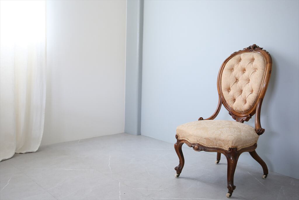 座面が低い位置にあるナーシングチェアと呼ばれる英国特有のチェア。
