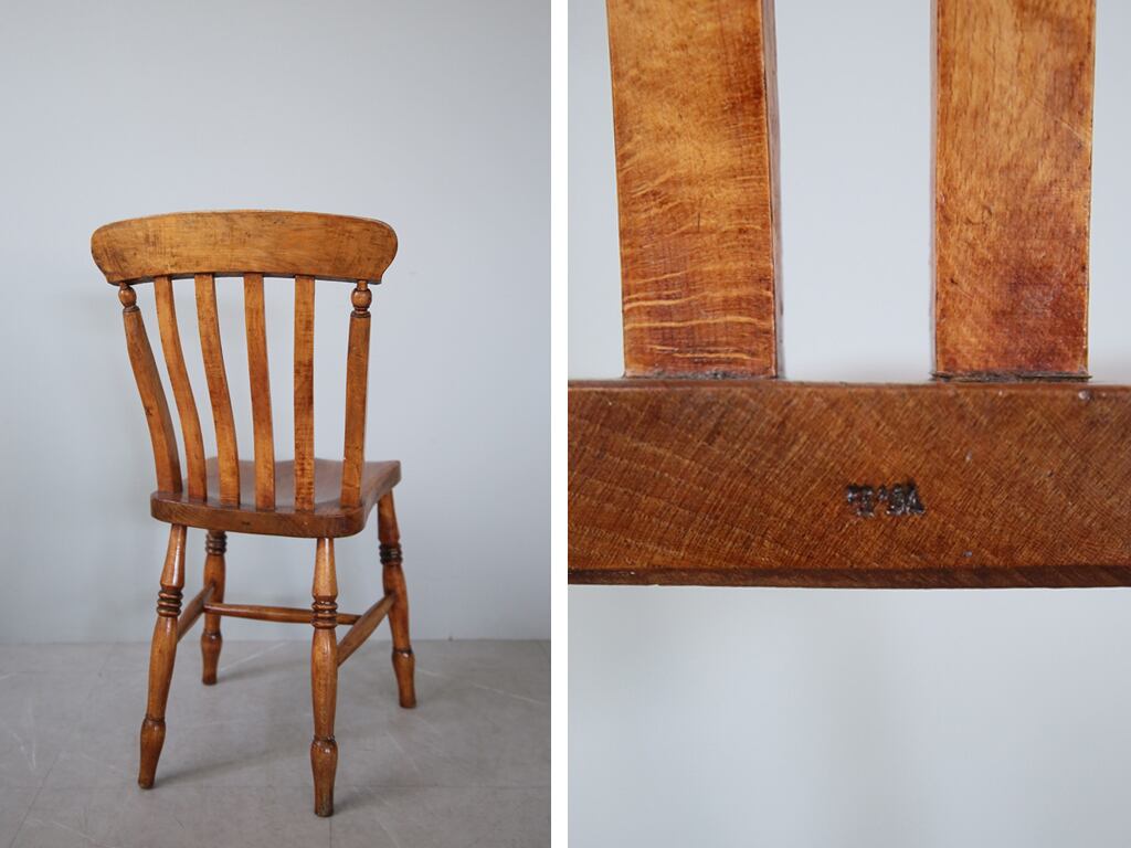 アンティークのイスの中でも特に人気なのがこちらのタイプのキッチンチェアで、もともとはキッチンやファームハウスなどの作業をするための場所で使われていたイスです。言うなれば作業用のイスですね。
