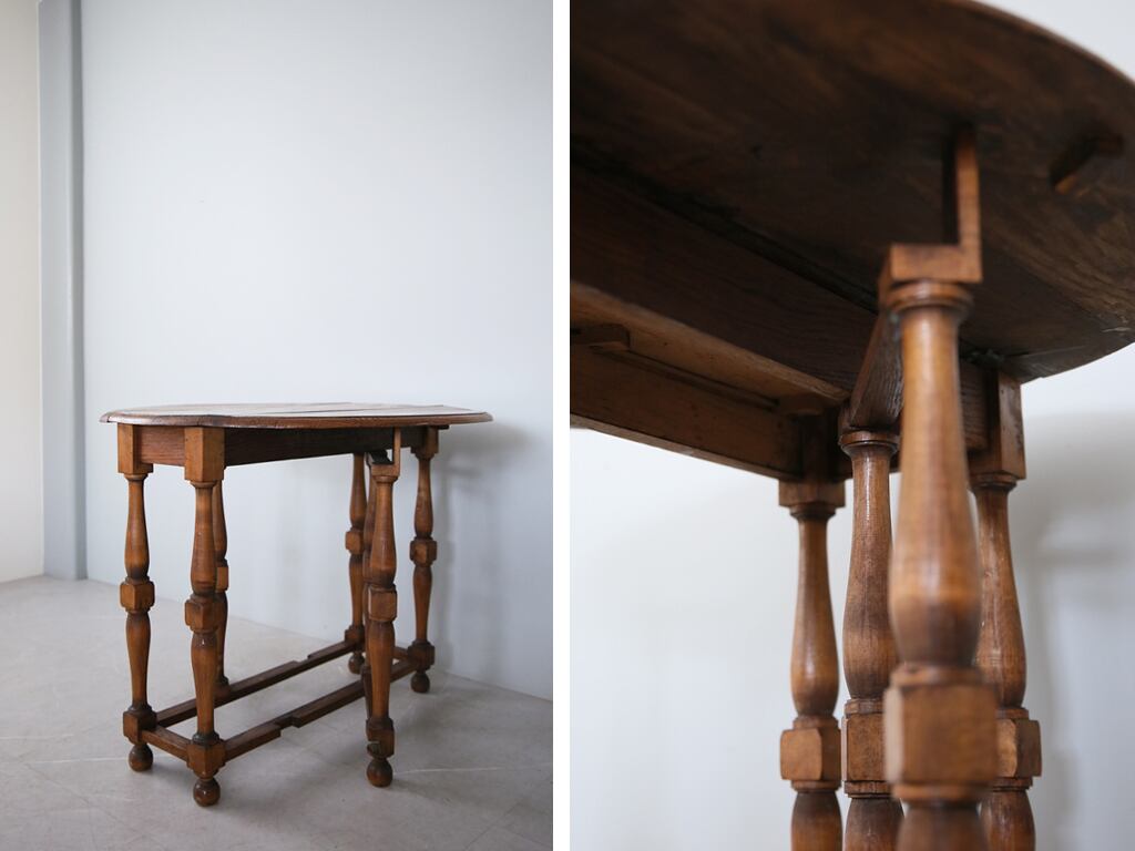 アンティーク独特の脚部のデザインが美しいゲートレッグテーブル。
