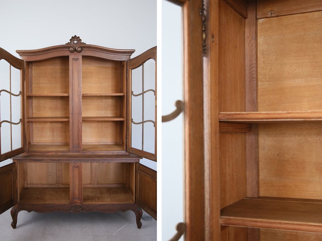 フランスアンティーク◇ルイ15世様式ガラスキャビネット/本棚/食器棚/飾り棚(a9300224)