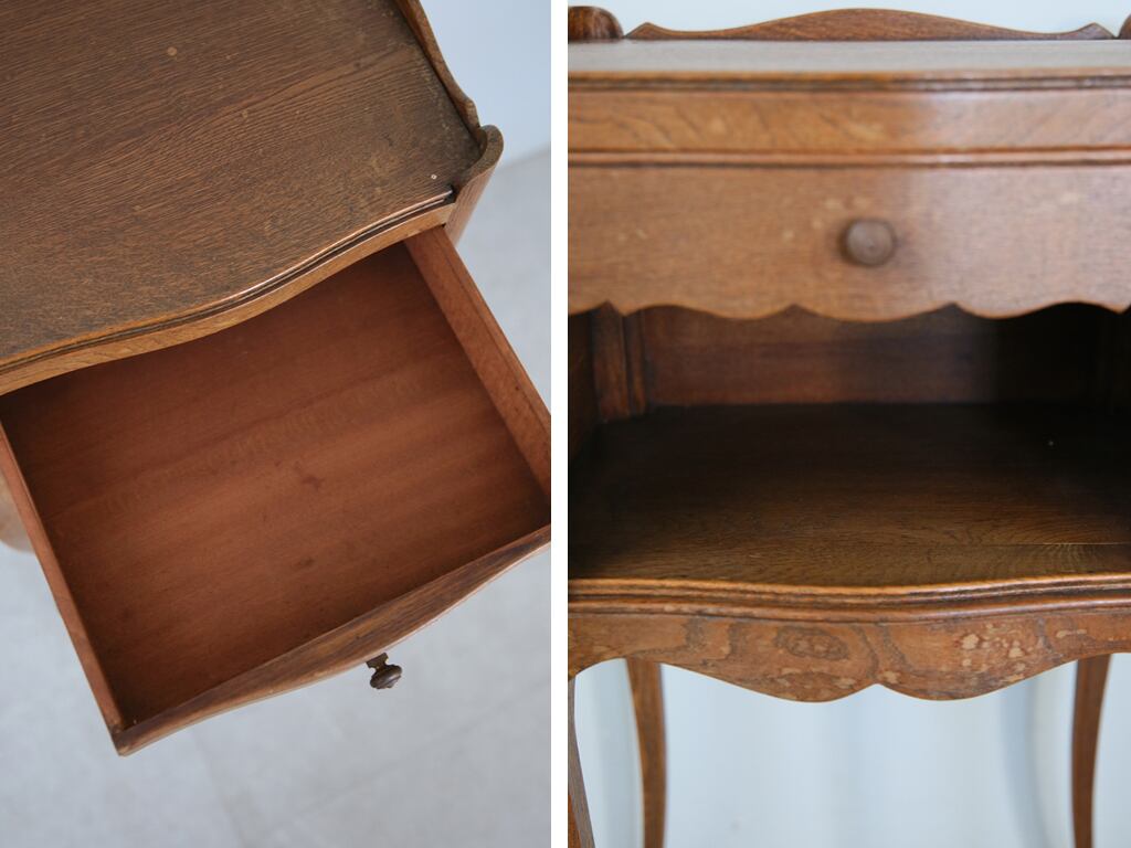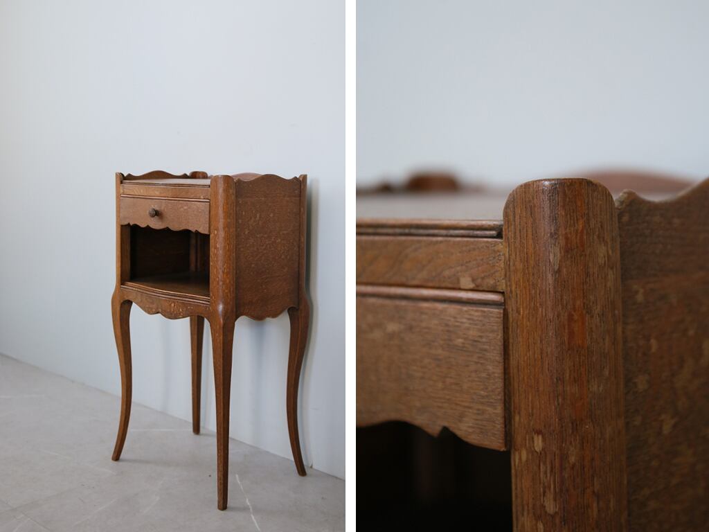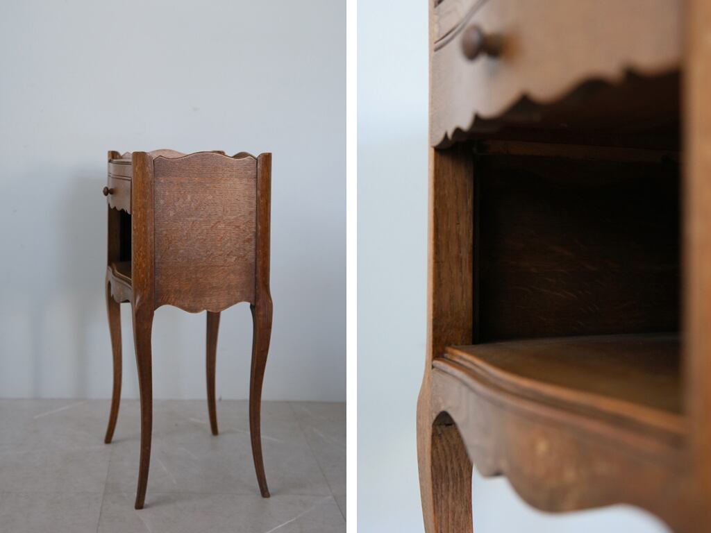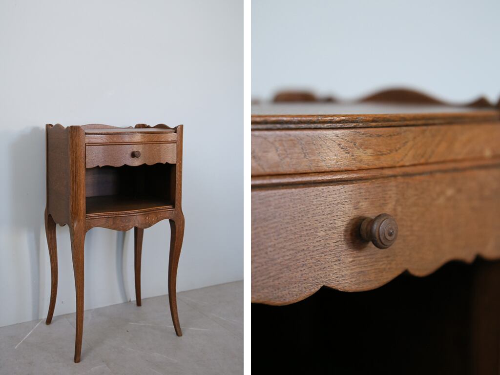 フランスの田舎で見つけた古木のベッドサイドキャビネットです。