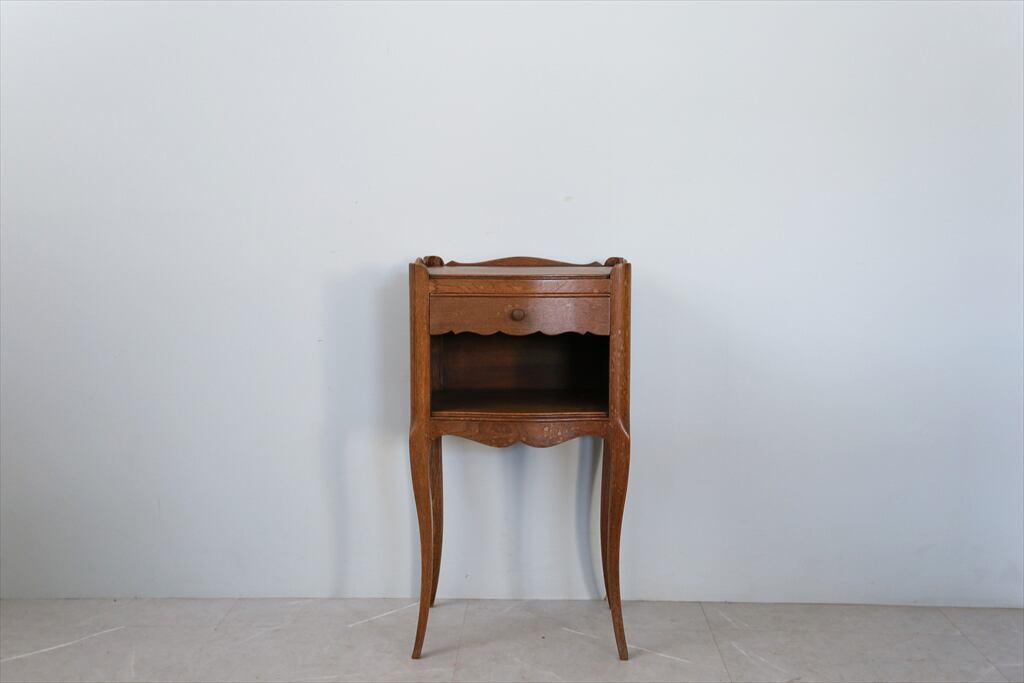 フレンチ家具らしい繊細なラインが特徴的なベッドサイドのキャビネット。玄関やホールで花台としてのご利用はもちろん、お気に入りの小物などを飾るテーブルとしても活躍してくれること間違いありません。