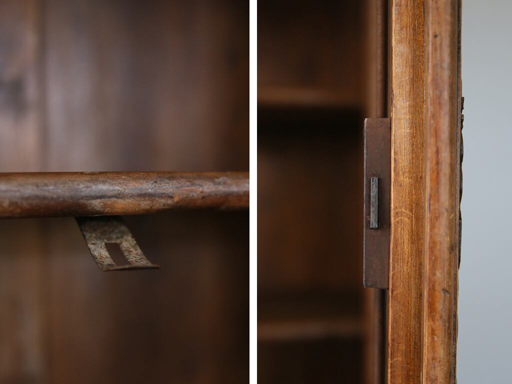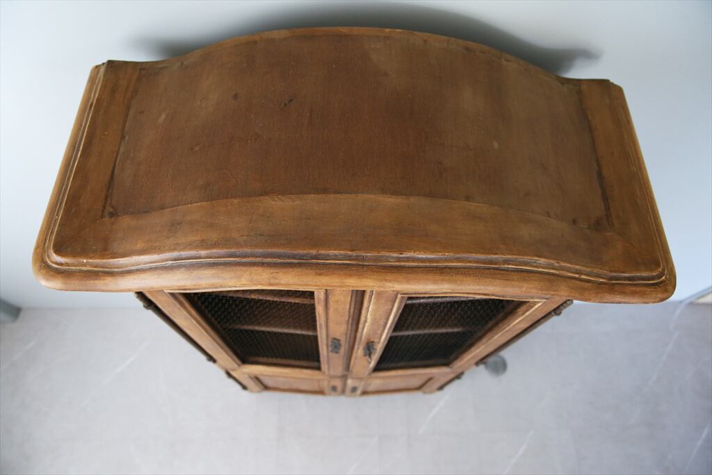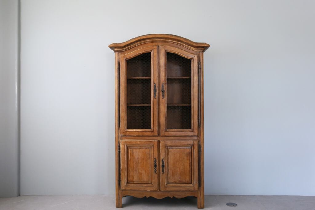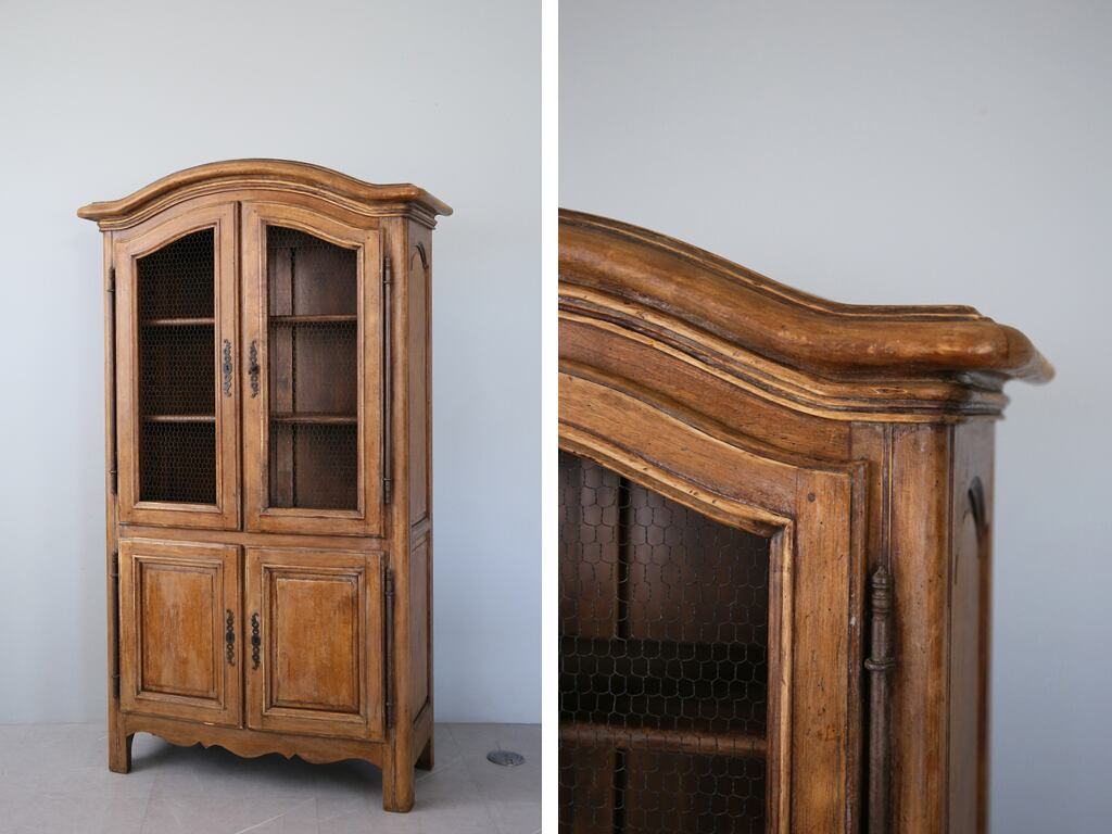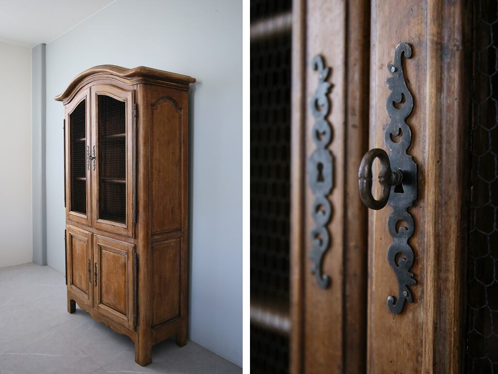 19世紀に入るとこの戸棚はだんだん大型化し、シンプルだったデザインに家具職人たちが装飾や曲線を取り入れるようになります。こうして誕生したのが見た目がとても美しい「Armoire Grillage(アルモワール・グリアージュ)」と呼ばれるキャビネットです。