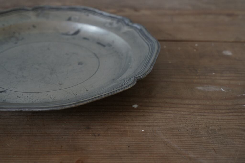 フランスの田舎で見つけた古いピューター製のプレートです。