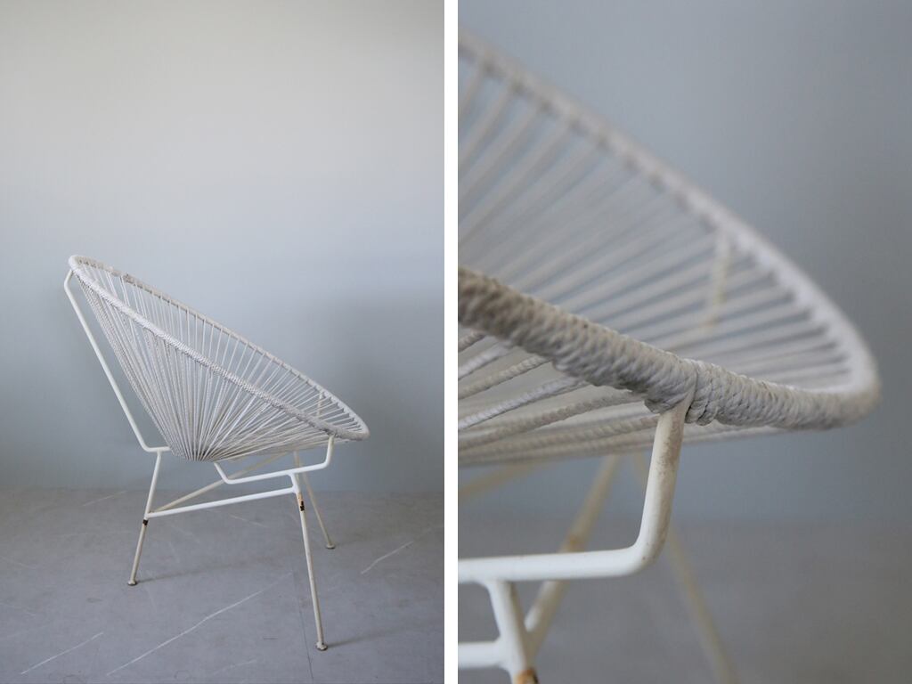 アカプルコチェアとは、メキシコでは最もポピュラーな家具の一つ。メキシコのクラフトマンたちの手で一つ一つ作られているこのシリーズは、スチールフレームにPVCコードが巻きつけられたというとてもシンプルな構造です。PVCコードには伸縮性があり、体にフィットするようなやわらかな座り心地を体感できます。