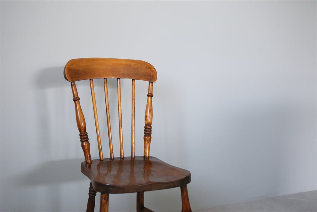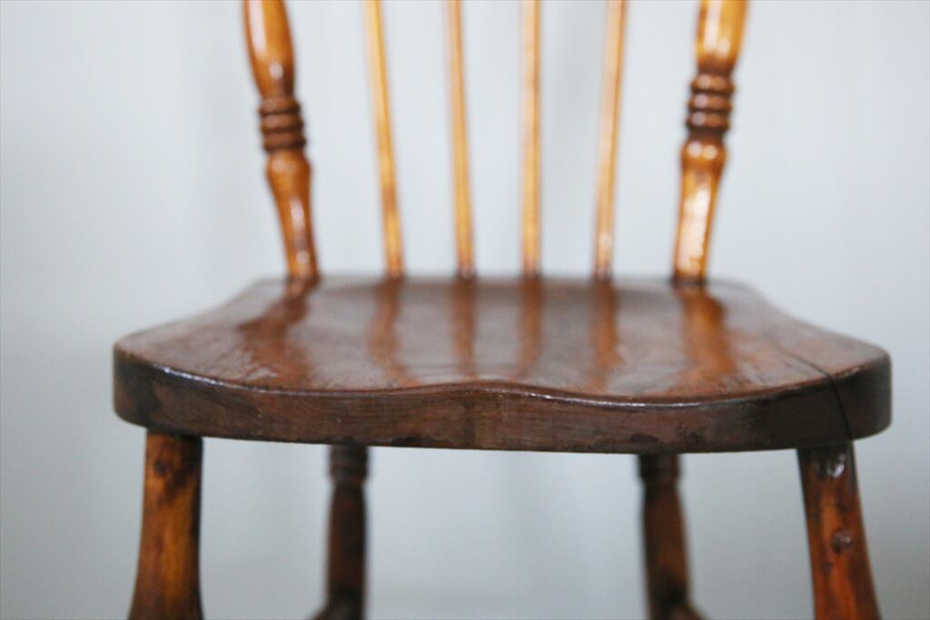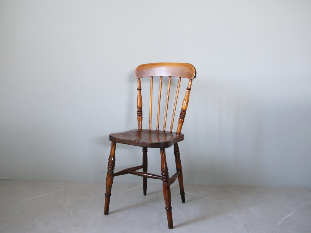 アンティークのイスの中でも特に人気なのがこちらのタイプのキッチンチェアで、もともとはキッチンやファームハウスなどの作業をするための場所で使われていたイスです。言うなれば作業用のイスですね。