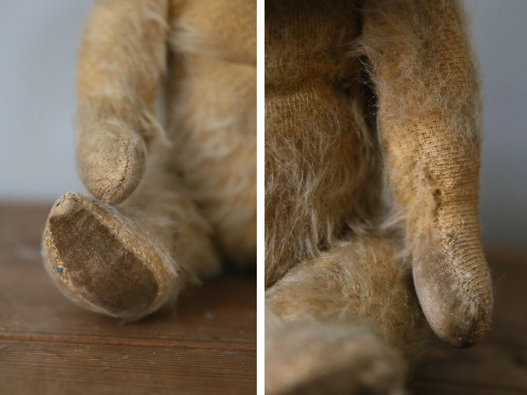 頭と手足のジョイントはフル稼働するので、好きなポーズで座らせておくことができます。一点物のヴィンテージテディベアはその出会いが一期一会。誰かに連れていかれると二度と巡り会うことができないので気になった方はお早めに。