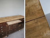 イギリスの田舎で見つけた古木の21杯ドロワー付きショップカウンターです。