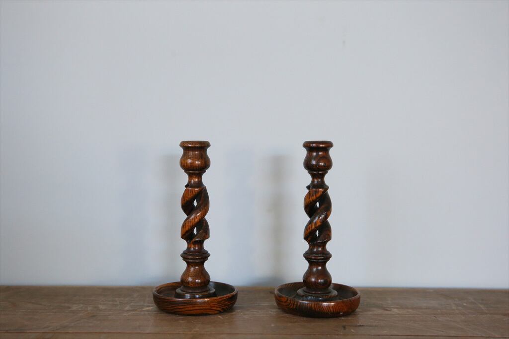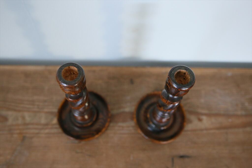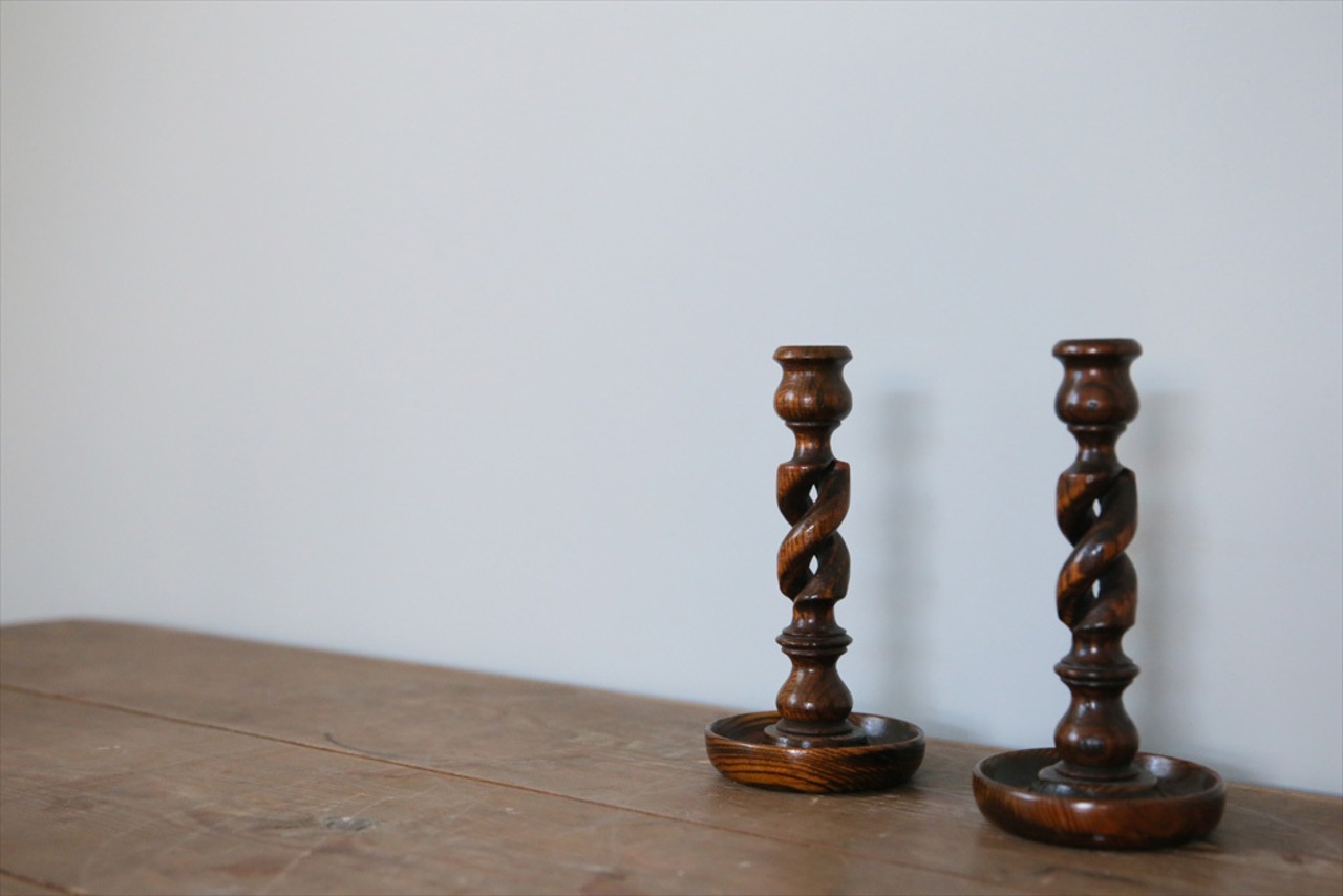 英国アンティーク◇木製キャンドルスタンド2本/ろうそく立て(a8400267)