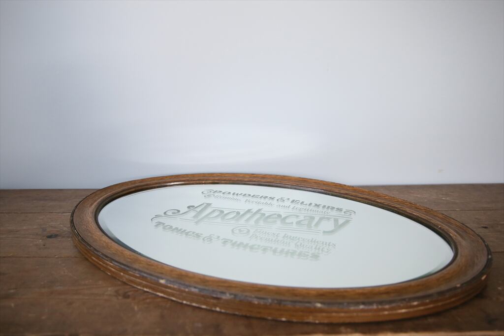 鏡面には英字で「Apohecary」とあるように、以前は調剤薬局で使用されていました。ポップな字体の英字が異国情緒を漂わせます。
